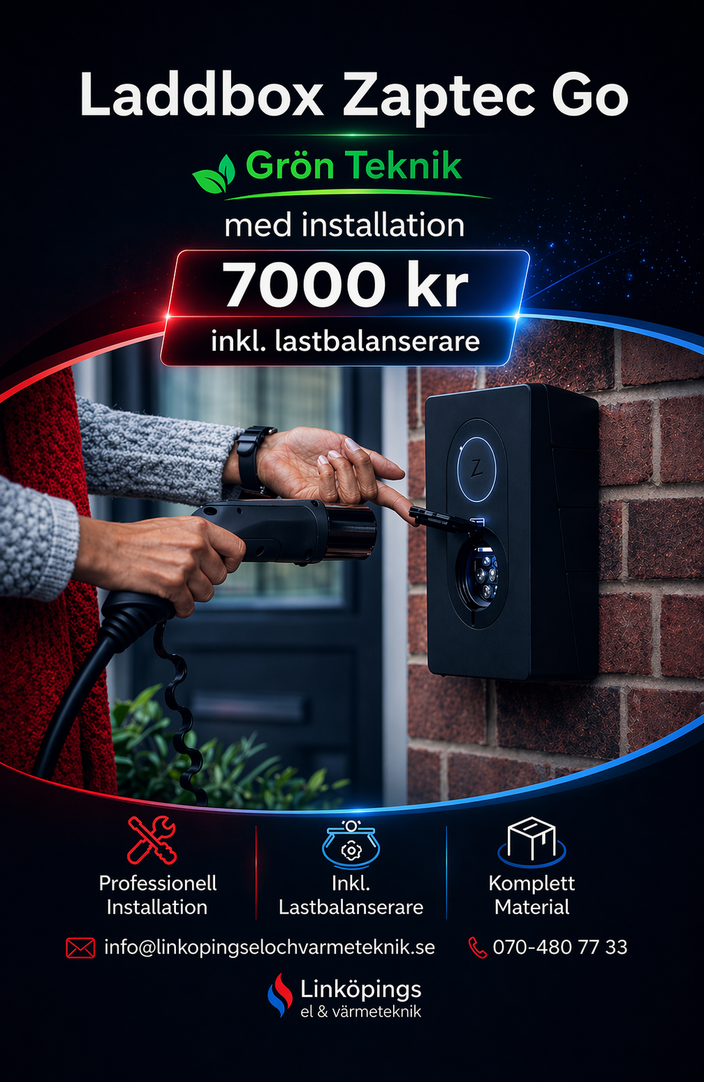 Vi erbjuder Zaptec laddbox med installation för endast 7000kr - inkl lastbalanserare efter Grön Teknik
